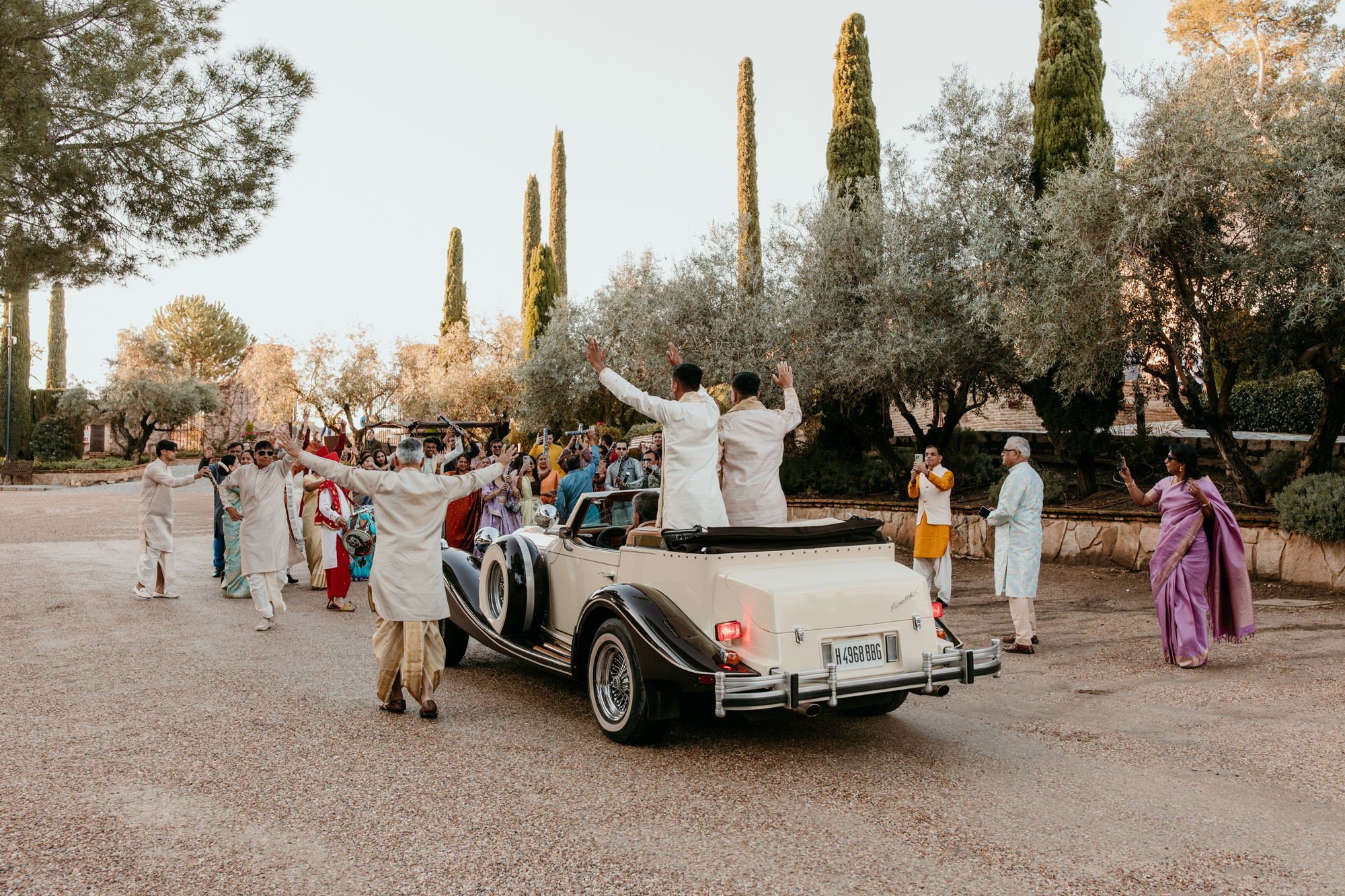 The baraat, a traditional wedding procession, arrived with lively music and excitement, leading everyone to the main ceremony. The Hindu wedding ceremony itself was a beautiful fusion of rituals, symbolism, and heartfelt vows, all set against the stunning backdrop of Toledo’s countryside.