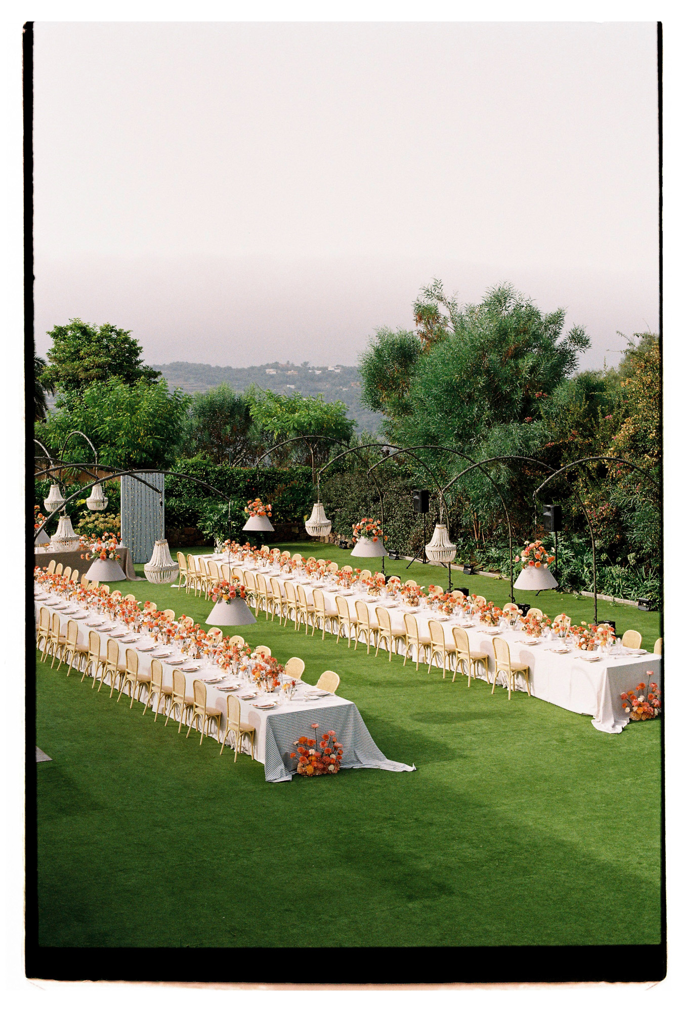 Las Palmas de Gran Canaria aportó un carácter único a la boda. La arena negra, los tonos azules del cielo y los verdes de la vegetación crearon una paleta de colores muy especial. Además, el diseño y la dirección de Rapsodia Mon Amour llenaron el día de color y detalles cuidados con personalidad. La decoración, las flores y cada espacio estaban pensados para transmitir alegría, elegancia y frescura. Todo respiraba verano, luz y emoción.